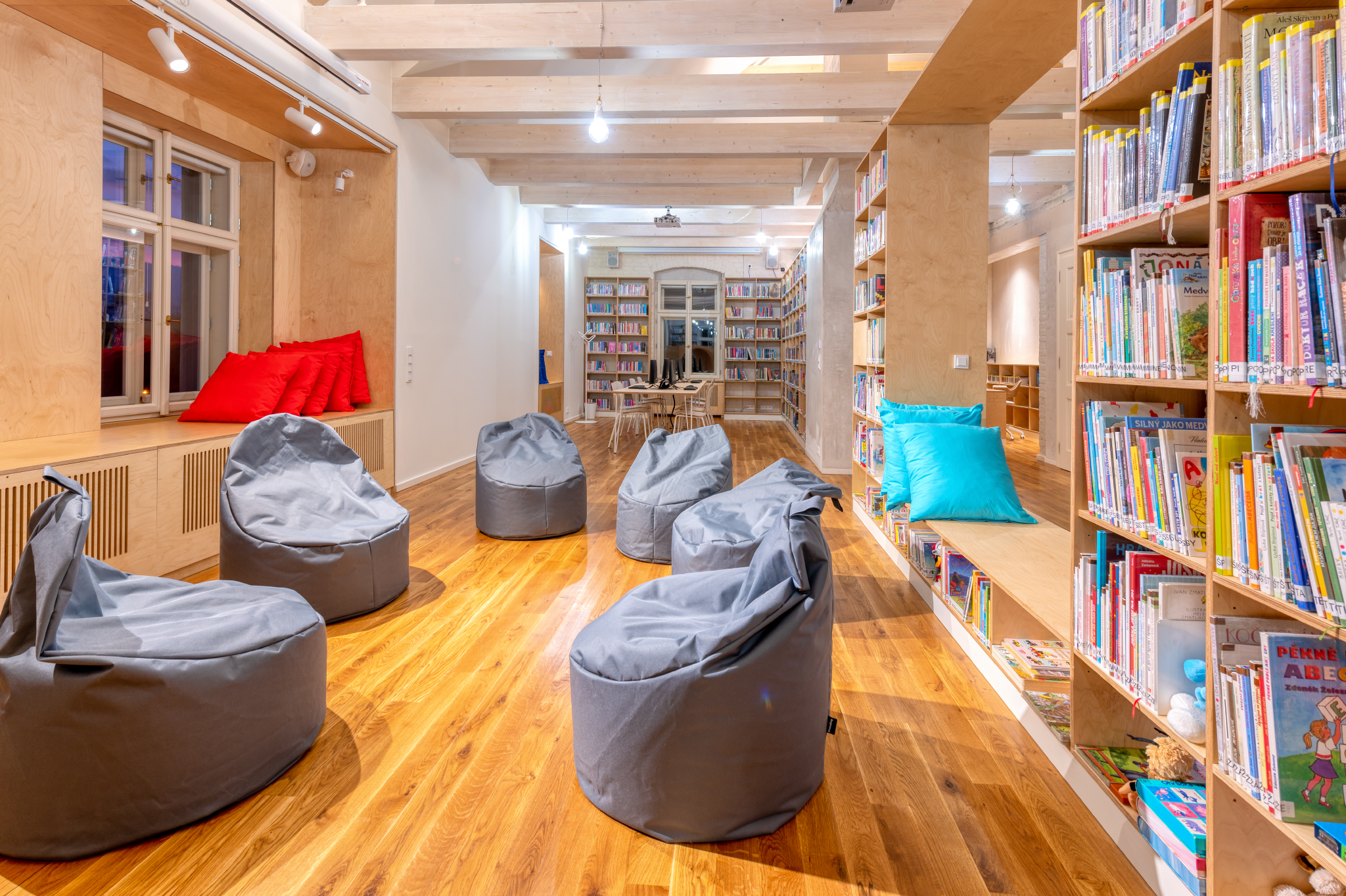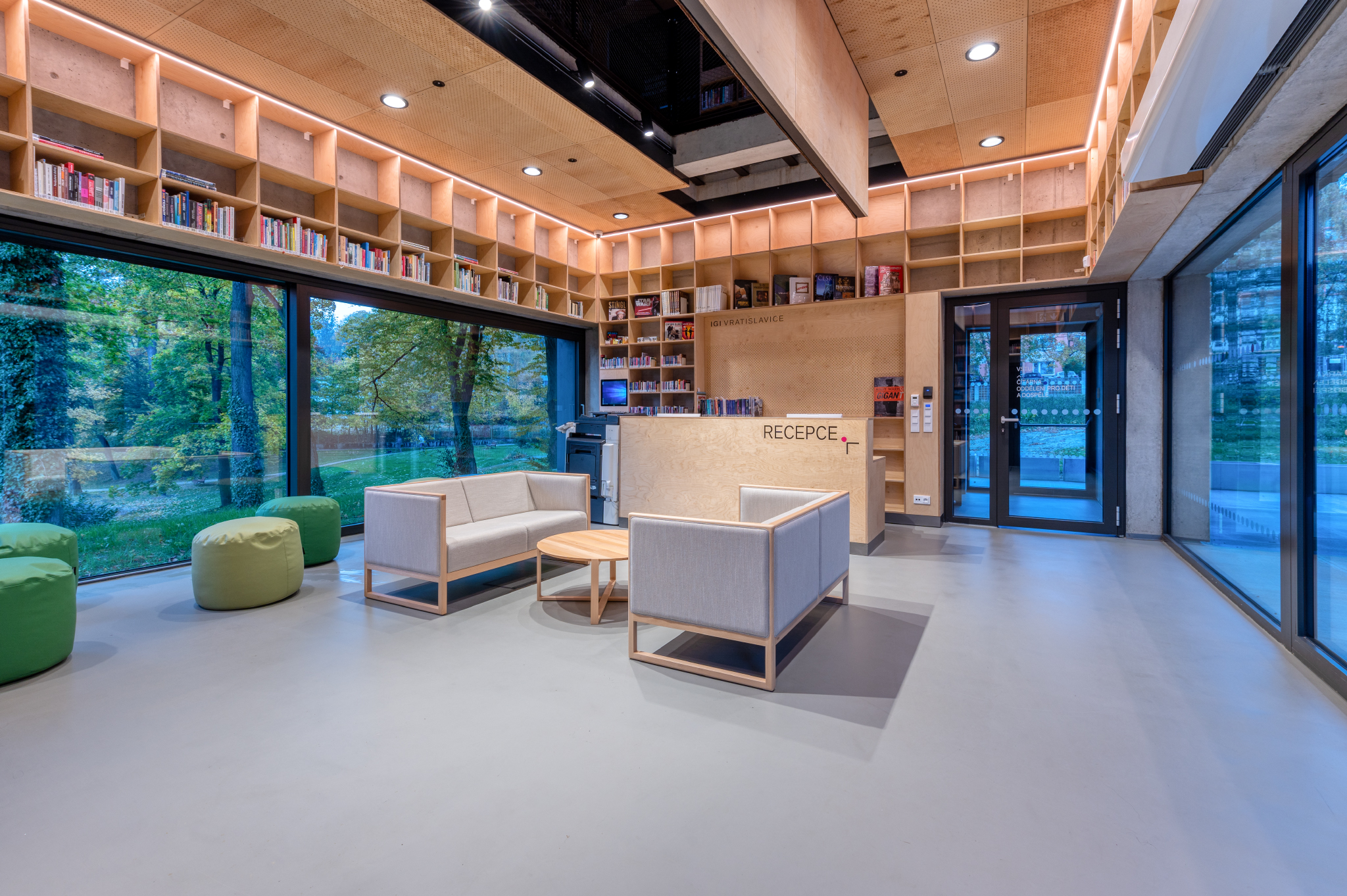 Kompletní vybavení interiéru nábytkem a dodávka dveří rekonstrukce a přístavby nového Spolkového komunitního centra a knihovny IGI Vratislavice n.N.